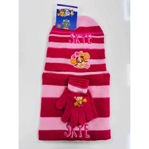 Mancs Őrjárat gyerek lány kötött szett: sapka, sál, kesztyű