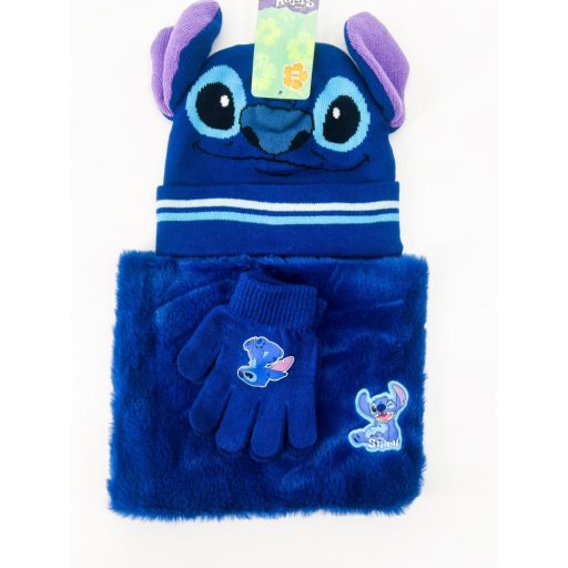 Lilo&Stitch gyerek fiú kötött szett: sapka, sál, kesztyű